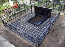 В ходе работы над данным заказом нам предстояло: переустановить покосившийся широкий памятник из чёрного гранита; покрасить обветшавшее от времени ограждение; обновить надписи на надгробье; установить прямоугольный цветник, а также выложить землю на участке гранитной брусчаткой. Приехав на место захоронения мы застали могилу в заброшенном состоянии: на всей её территории росла сорная трава, практически полностью скрывавшая памятник.